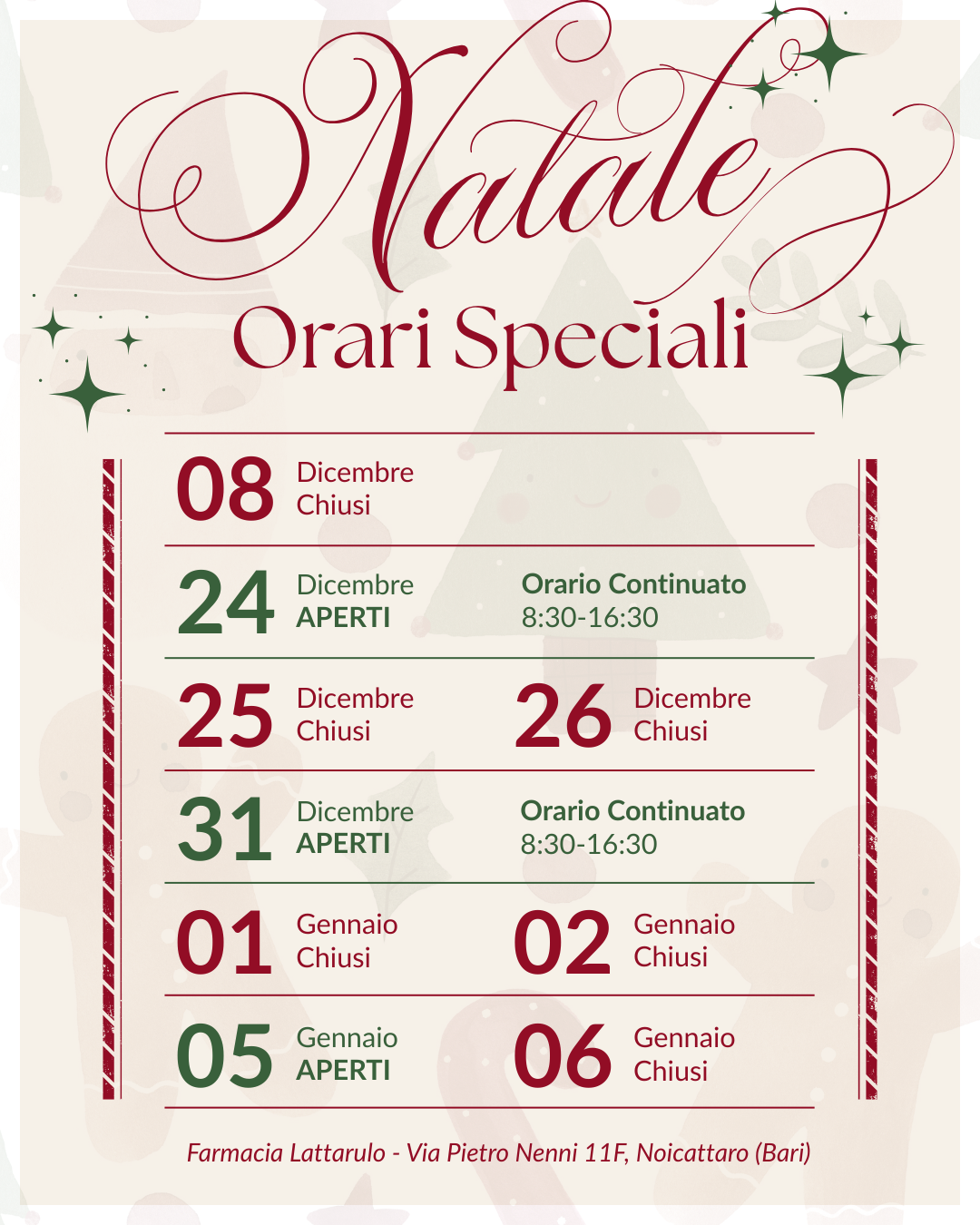 🎄 Orari Festività – Farmacia Lattarulo 🎄